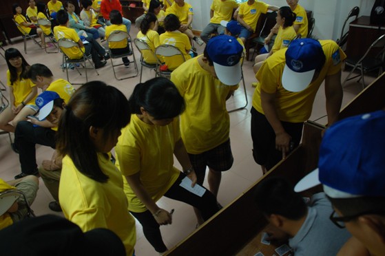 25日早,參訓(xùn)人員在公司門口集合出發(fā)。本次活動由人力資源總部策劃實施,設(shè)計了二維解碼、數(shù)讀、大風(fēng)吹、分組等團隊游戲和分享總結(jié)環(huán)節(jié)。活動現(xiàn)場,各組人員積極投入,尤其在二維解碼游戲中,大家更是將團隊精神發(fā)揮得淋漓盡致。每個組排成一個縱隊,前后兩人負責解碼和擺牌,中間的人則負責傳遞信息。大家緊密配合,縝密推理,通過團隊配合,排除各種障礙,最終達成目標。過程縱然緊張,但為能順利完成任務(wù),大家都樂此不疲。