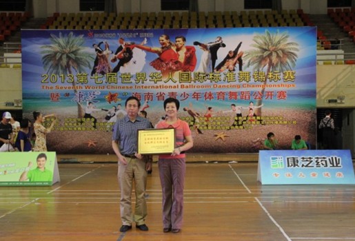 8月16日,由康芝藥業傾情贊助,海南省文化廣電出版體育廳、共青團海南省委、世界華人國際標準舞聯合會共同主辦的2013年第七屆世界華人國際標準舞錦標賽暨“康芝杯”海南省首屆青少年體育舞蹈公開賽比賽在海南大學體育館舉行。