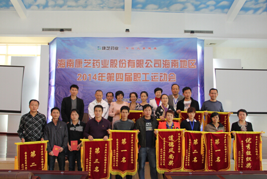 2014年12月10日,康芝藥業海南總廠第四屆職工運動會閉幕暨頒獎儀式在海南總廠大禮堂隆重舉行??抵ニ帢I財務總監劉會良、總廠生產副總高洪常、研究所總監凌日金、人事行政總監汪怡婷出席了閉幕儀式。