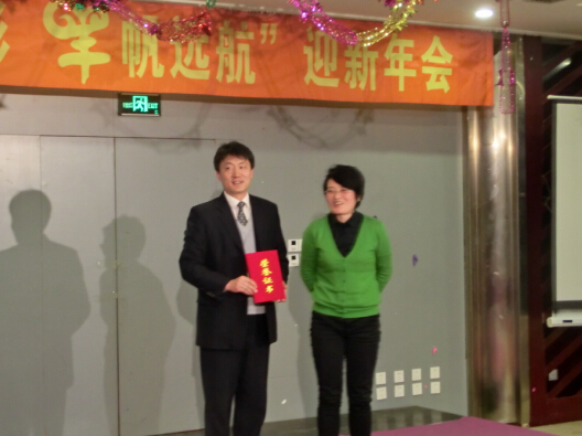 迎新年會對2014年度的先進員工進行了表彰,在會場宣讀了沈陽康芝《關于2014年先進表彰的決定》,并向先進團隊和個人頒發了獎狀,同時倡議大家學習先進、時刻以先進為榜樣,發揚榜樣在生產、生活中的帶動作用,在公司形成“趕、學、比、超”的良性競爭范圍。