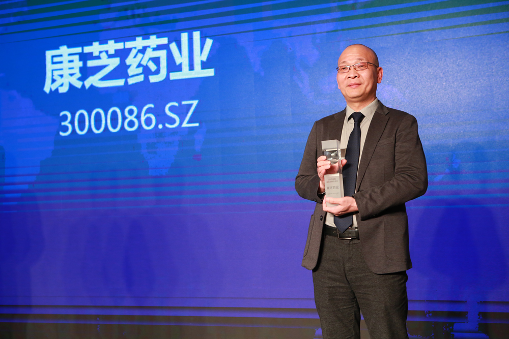 當(dāng)晚,在交流晚宴后,頒獎(jiǎng)典禮隆重舉行??抵ニ帢I(yè)等20家優(yōu)秀上市企業(yè)代表先后登臺(tái)領(lǐng)獎(jiǎng)。