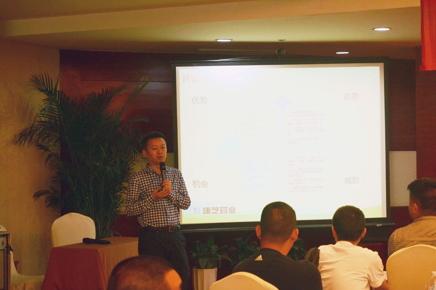 現場,康芝藥業市場醫學部總經理劉湛對公司近期及未來市場推廣動作進行了詳實介紹,并針對新政策環境下藥品銷售品種的選擇,向在座代理商進行了專業的指導和建議。
