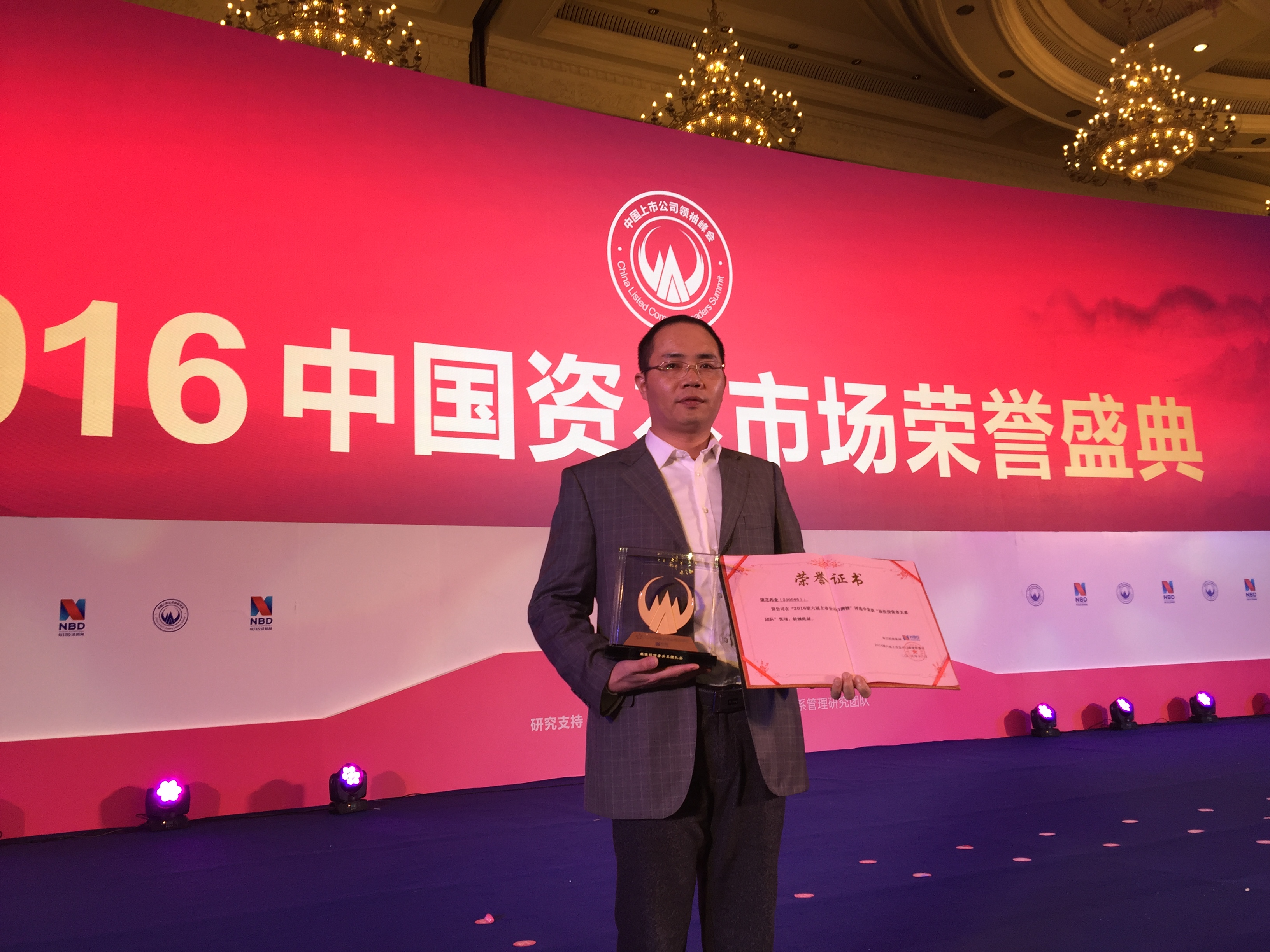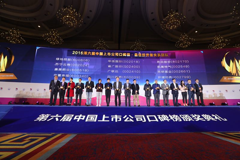 11月25日,由知名財經媒體《每日經濟新聞》主辦的“2016 第六屆中國上市公司口碑榜”頒獎典禮在成都隆重舉行??抵ニ帢I憑借在投資者關系管理工作中的優異表現,及在資本市場的良好口碑,榮獲“最佳投資者關系團隊”稱號。公司董事會秘書兼副總裁林德新先生代表公司受領榮譽證書及獎杯。