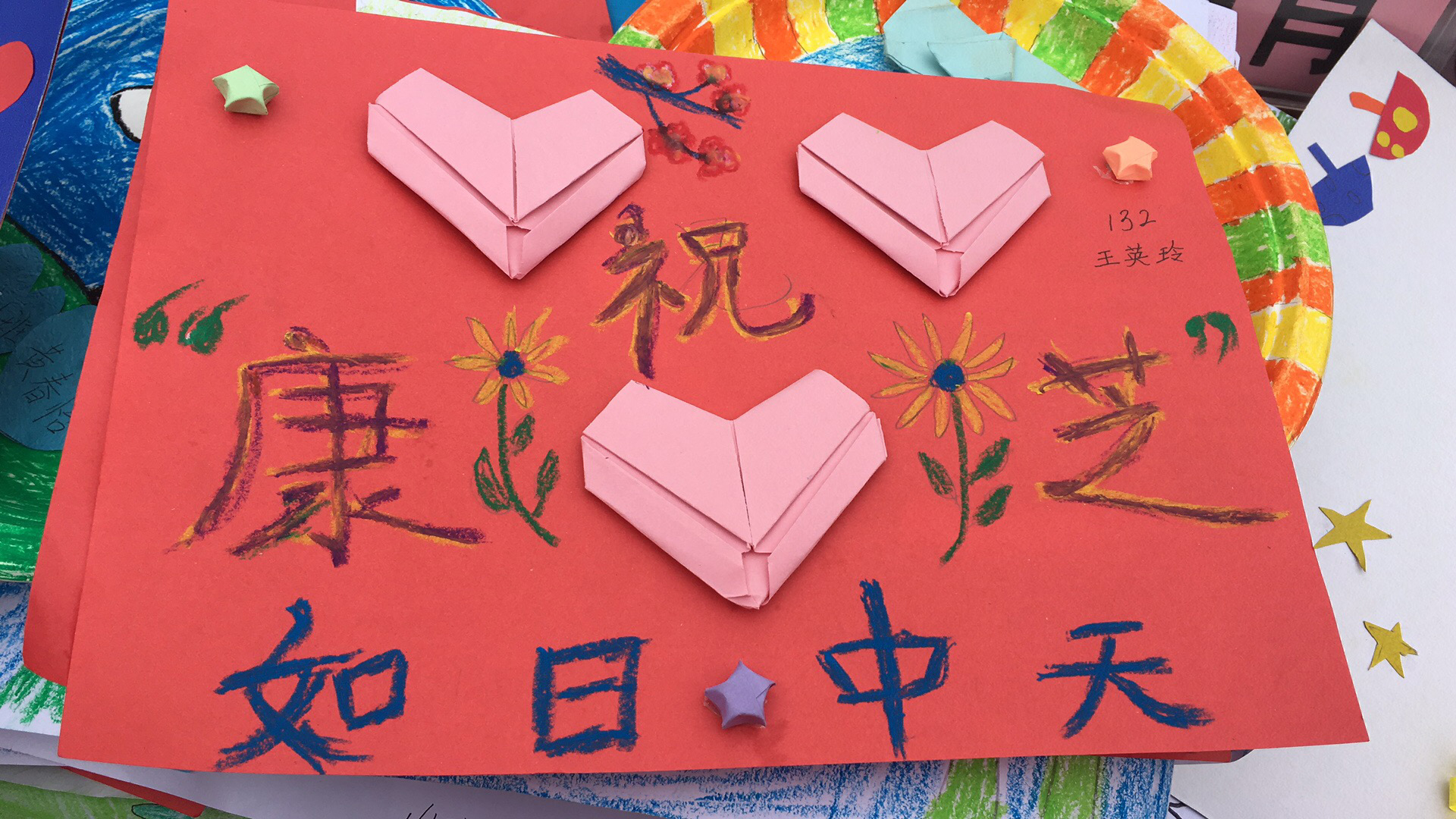 孩子們也用自己精心制作的手工作品,向客人們表達謝意和祝?!?/p>