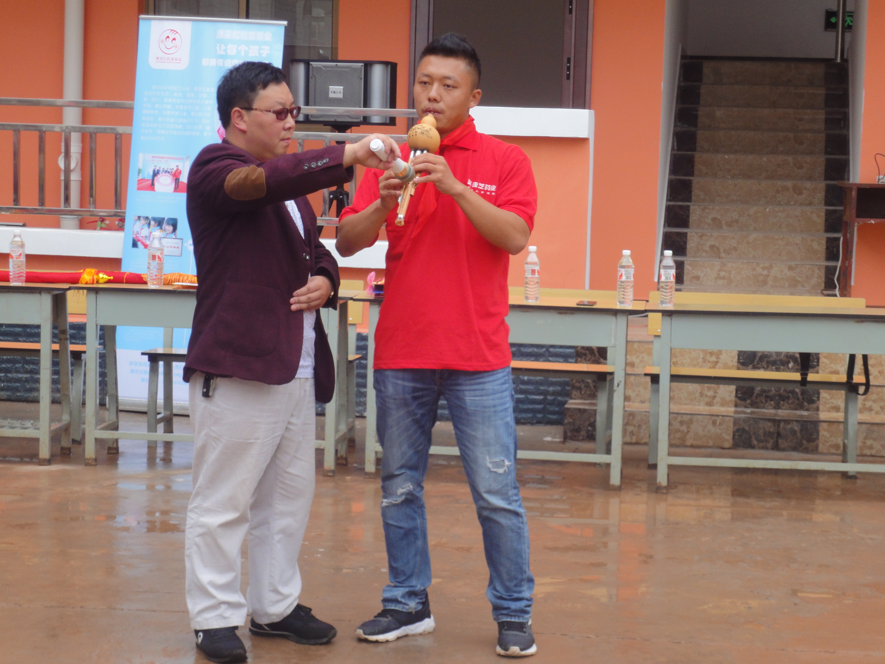 此番康芝的愛心之舉也感染了一眾愛心企業和人士,來自云南銘駿藥業有限公司的愛心代表孫小燕為孩子們捐贈了籃球,文具盒等愛心物資;云南彝頌文化傳播有限公司捐贈的葫蘆絲和樂器學習教材也受到了學生們的熱烈歡迎,彝頌文化負責人周建龍還表示,將輔導學校進行葫蘆絲教學,幫助學校建立一個葫蘆絲表演隊;富源縣旺家樂健康藥房愛心代表荀祥澤也在現場給孩子們捐贈了書包、計算器、直尺、工具造型筆、軟皮本、小筆記本若干。同學們拿到這么多沉甸甸的愛心禮物,內心充滿了感恩之心,紛紛給企業愛心代表獻上了親手做的手抄報及賀卡表達感謝!