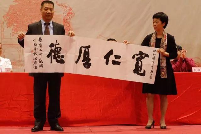 為表達對熱心校友的感謝,普寧二中還準備了兩幅書法作品作為紀念品,分別贈予洪江游先生和廣州校友會。現場,普寧市方錦屏副市長向洪江游先生贈送紀念品,并對支持家鄉教育事業和社會經濟發展的社會熱心人士表示感謝和敬意。