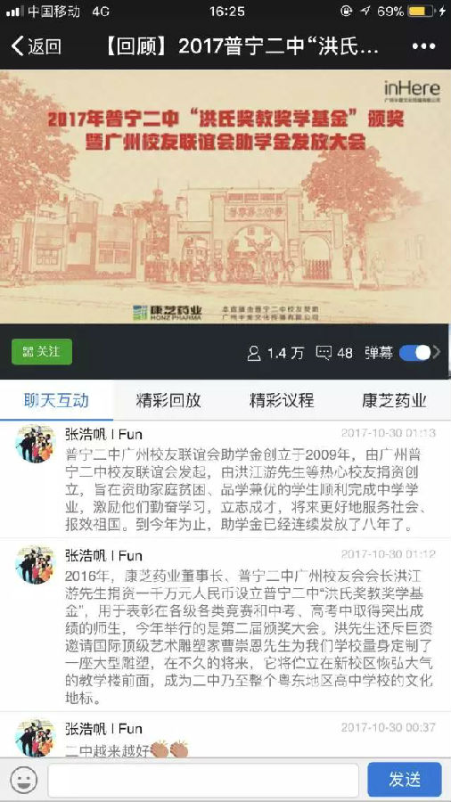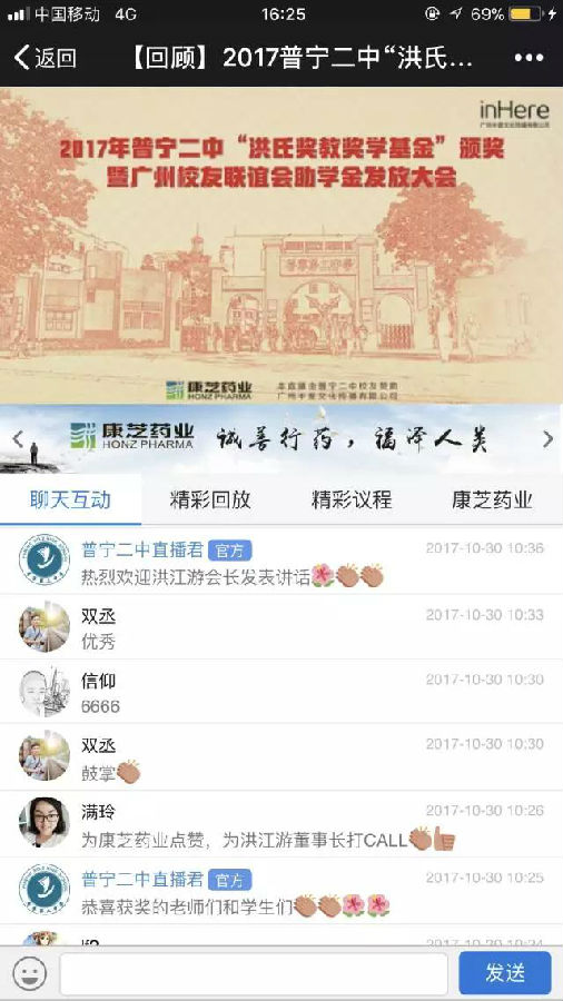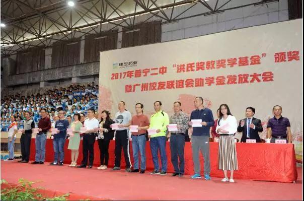 10月30日,2017普寧二中“洪氏獎教獎學基金”頒獎暨廣州校友聯誼會助學金發放儀式隆重舉行。康芝藥業董事長、廣州普寧二中校友會會長洪江游先生蒞臨現場致辭并頒獎。