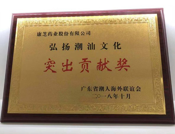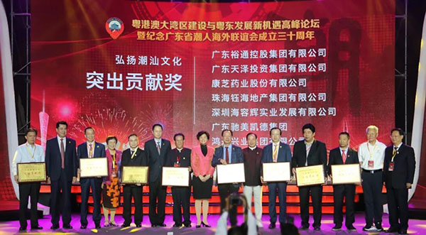 本次大會中,康芝藥業股份公司榮獲弘揚潮汕文化突出貢獻獎,廣東省潮人海外聯誼會名譽會長、康芝藥業董事長洪江游上臺領取了該獎項。