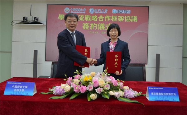 其后,康芝藥業副董事長兼副總裁洪麗萍女士與臺灣亞洲大學校友總會秘書長蔡少洲先生簽署學術交流戰略合作框架協議,正式達成戰略合作關系。