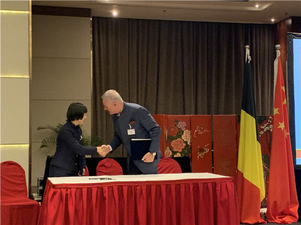 11月18日,比利時(shí)阿斯特里德公主率領(lǐng)經(jīng)貿(mào)代表團(tuán)訪問(wèn)中國(guó),康芝藥業(yè)副董事長(zhǎng)兼副總裁洪麗萍女士、首席科學(xué)官辜列先生、王思蓉經(jīng)理一行受邀參加比利時(shí)經(jīng)貿(mào)代表團(tuán)在北京站的商務(wù)活動(dòng)。當(dāng)天,洪麗萍女士與比利時(shí)Vésale Pharma公司董事長(zhǎng)Jehan Lienart先生代表雙方公司簽署了全面合作協(xié)議。