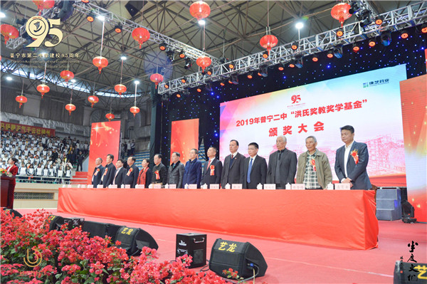 12月8日,普寧第二中學(xué)(以下簡稱普寧二中)隆重舉行建校95周年慶典。藉此,學(xué)校舉辦辦學(xué)成果展、書畫展、學(xué)術(shù)交流、校友羽毛球友誼賽、教師宿舍樓工程奠基、雕像落成揭幕儀式、慶祝大會、“洪氏獎教獎學(xué)基金”頒獎大會、文藝演出等系列活動。其中,雕像落成揭幕儀式及“洪氏獎教獎學(xué)基金”頒獎大會中,康芝藥業(yè)董事長洪江游先生為主禮嘉賓。