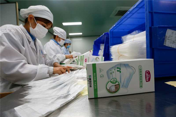 康芝藥業抓緊生產一次性醫用口罩 《海南日報》袁琛攝