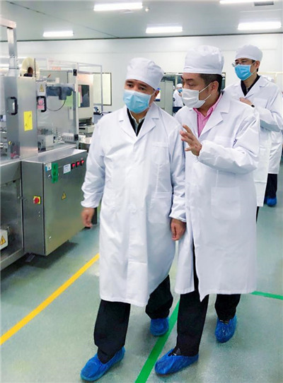劉賜貴書記一行考察和參觀了康芝藥業海南總廠口罩生產線和藥品生產車間,來到一線員工身邊,關心工人們的返崗時間和個人籍貫等情況,對企業防疫抗疫工作作出了重要指示。同時,劉賜貴書記指出:“通過現場調研考察可以看到,康芝藥業是一家非常不錯的企業,生機勃勃、設備先進,對本次疫情做出了正確的預判,及時迅速備產投產,值得表揚!”