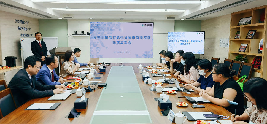 9月14日,康芝藥業股份有限公司“蘇拉明鈉治療急性腎損傷新適應癥臨床啟動會” 在廣州總部順利舉行,康芝藥業首席科學官辜列博士、副總裁兼董秘林德新、戰略發展部總經理龔駿劍等高管出席會議,正式宣布公司旗下廣東康大制藥有限公司申報2.4類新藥注射用蘇拉明鈉治療對利尿劑抵抗的急性腎損傷,獲國家藥監局臨床試驗默示許可并正式開啟二期臨床試驗的喜訊。
