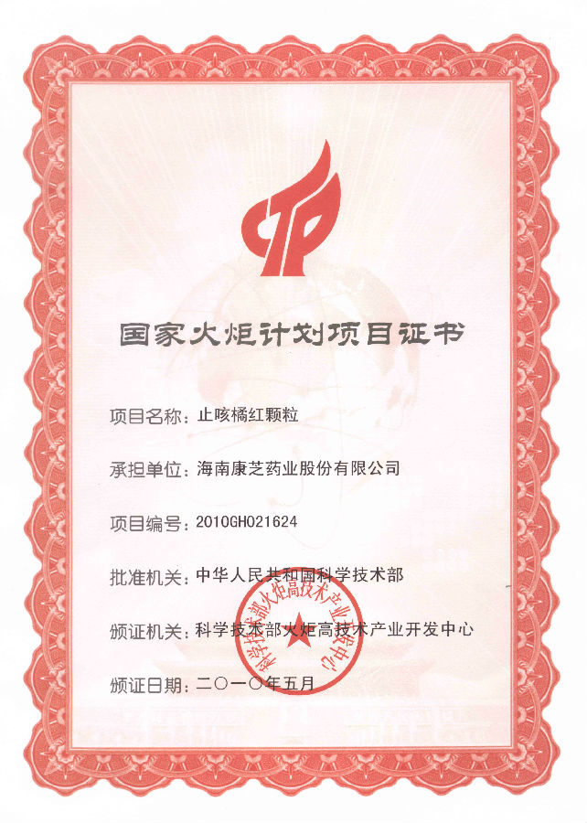 康芝?止咳橘紅顆粒作為康芝明星藥品,投產上市多年,適用人群可涵蓋成人及兒童。曾于2010 年被列為國家火炬計劃項目產品,2013年榮獲海南省科技成果轉化二等獎。此次入選“2021年海南省重點研發計劃項目”,更是充分體現了康芝藥業在兒童藥研究領域已具有較強的研究基礎與學術影響力。