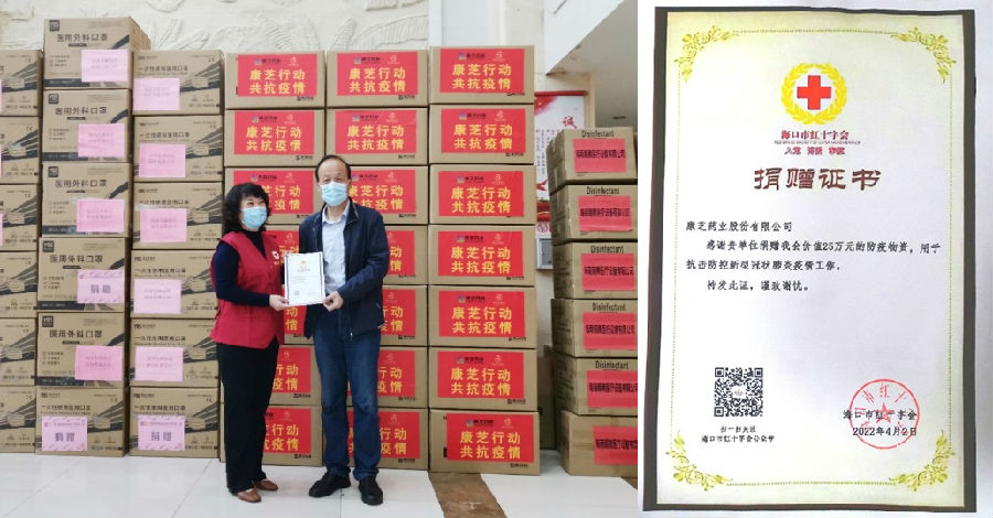 近日海口市疫情形勢(shì)嚴(yán)峻多發(fā),全市人民團(tuán)結(jié)一心共同抗疫。在疫情阻擊戰(zhàn)的關(guān)鍵時(shí)期,知名上市藥企康芝藥業(yè)一馬當(dāng)先,在收悉海南省醫(yī)藥行業(yè)協(xié)會(huì)的捐贈(zèng)倡議后,第一時(shí)間與協(xié)會(huì)取得聯(lián)系,并表示愿意捐贈(zèng)50萬(wàn)只康芝愛(ài)心防疫口罩,以實(shí)際行動(dòng)積極志愿海口地區(qū)疫情防控工作。