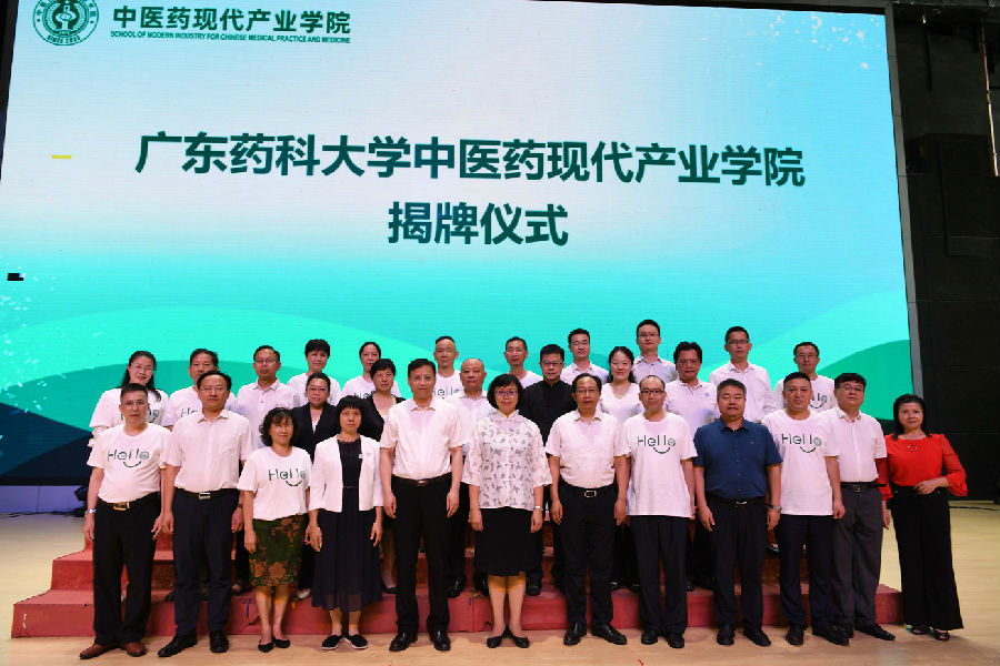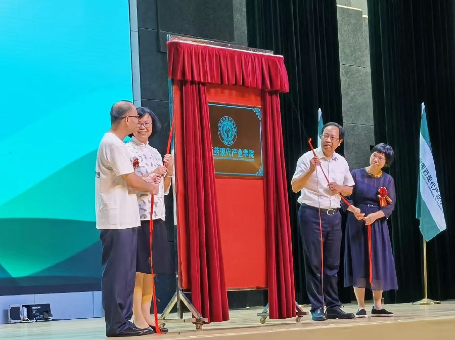 6月25日,“廣東藥科大學中醫藥現代產業學院”揭牌儀式,在廣東藥科大學云浮校區國際會議中心隆重舉行。中醫藥現代產業學院由廣東藥科大學聯合云浮市人民政府、康芝藥業股份有限公司和廣東君安醫生集團四方共同發起成立。云浮市政協黨組書記梁麗嫻主席、廣東藥科大學黨委書記劉晟教授、廣東藥科大學校長翟理祥研究員、廣東藥科大學副校長楊全教授、廣東藥科大學中藥資源學院常務副院長龐玉新研究員、君安醫生集團董事長車軍先生、君安醫生集團聯合創始人鄒文生女士和康芝藥業副董事長洪麗萍女士;云浮市中醫藥管理局、科技局、農業農村局等有關部門領導,廣東藥科大學云浮校區辦、中藥資源學院、中醫學院、健康學院、護理學院等學校有關處室負責人,以及廣東藥科大學中藥資源學院部分師生,出席了此次揭牌儀式。