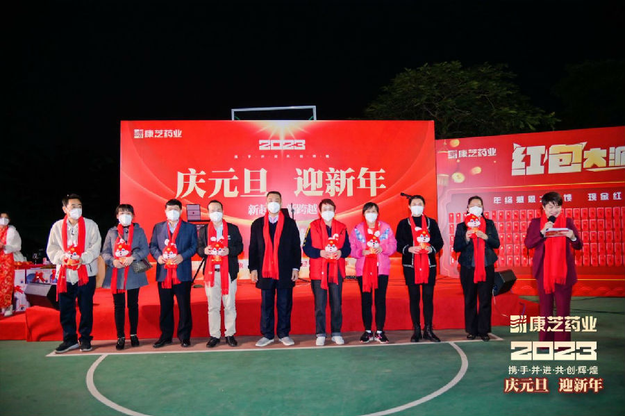 洪江游董事長代表康芝藥業向全體康芝人送去了新年祝福,同時表示自疫情開放之后,各類防疫藥品的社會需求量激增,相關藥物的儲備緊張,康芝藥業受到海南省政府領導及海口市政府領導高度關注并親臨康芝園區調研指導。作為上市藥企,康芝藥業將責無旁貸地擔起企業社會責任,保質保量地安全生產防疫物資及藥品。這個任務光榮、艱巨且偉大!隨后,董事長洪江游帶著領導班子上臺祝酒,由衷地感謝為了滿足防疫藥品生產需求,心甘情愿留守園區,加入全閉環生產環境,開足馬力、加班加點、全力保障防疫物資穩定供應的康芝員工們,相信在大家的共同努力下,2023 年康芝藥業將會再攀高峰,迎來更好的發展,未來會更加精彩且輝煌!