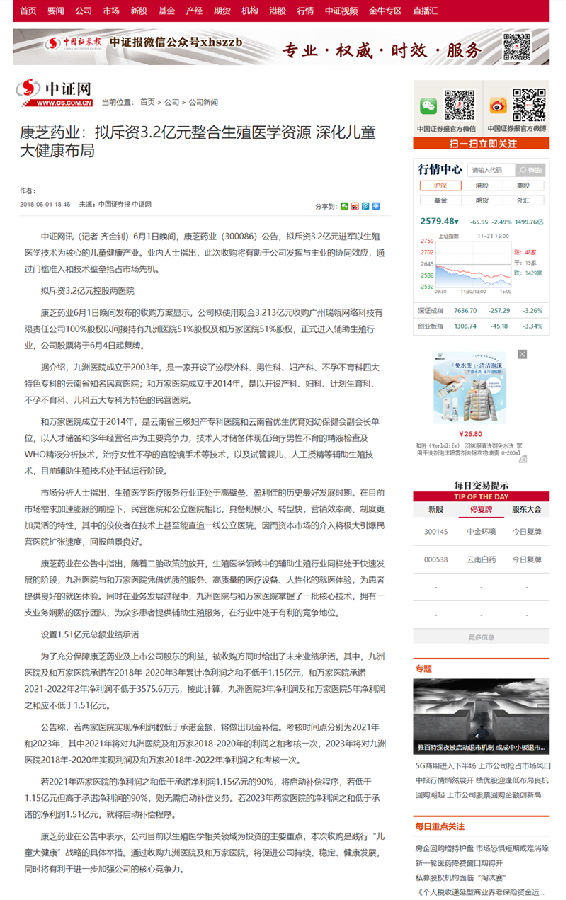 康芝藥業在公告中表示,公司目前以生殖醫學相關領域為投資的主要重點,本次收購是踐行“兒童大健康”戰略的具體舉措。通過收購九洲醫院及和萬家醫院,將促進公司持續、穩定、健康發展,同時將有利于進一步加強公司的核心競爭力。